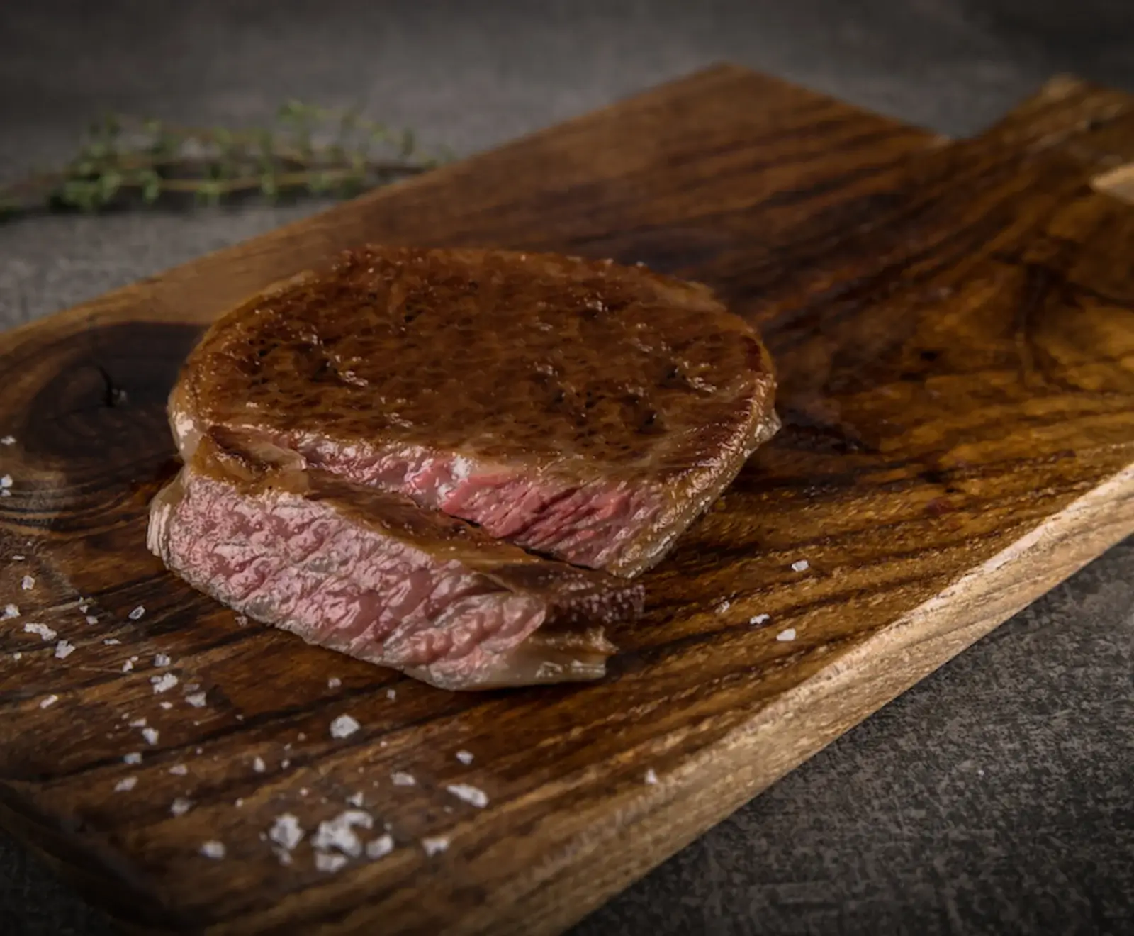 Eine Gourmet-Spezialität für Kenner. Aufgrund dem hohen Anteil intramuskulösen Fetts empfehlen wir eine geringere Kerntemperatur von ca. 52 °C für den optimalen Fleischgenuss. Das aromatische Fett schmilzt früher als üblich und sorgt für den unnachahmlichen Wagyu-Geschmack. Bei hoher Temperatur auf dem Grill oder in der Pfanne beidseitig scharf anbraten und bei milder Hitze garziehen lassen. Salzen und Pfeffern nach Geschmack.