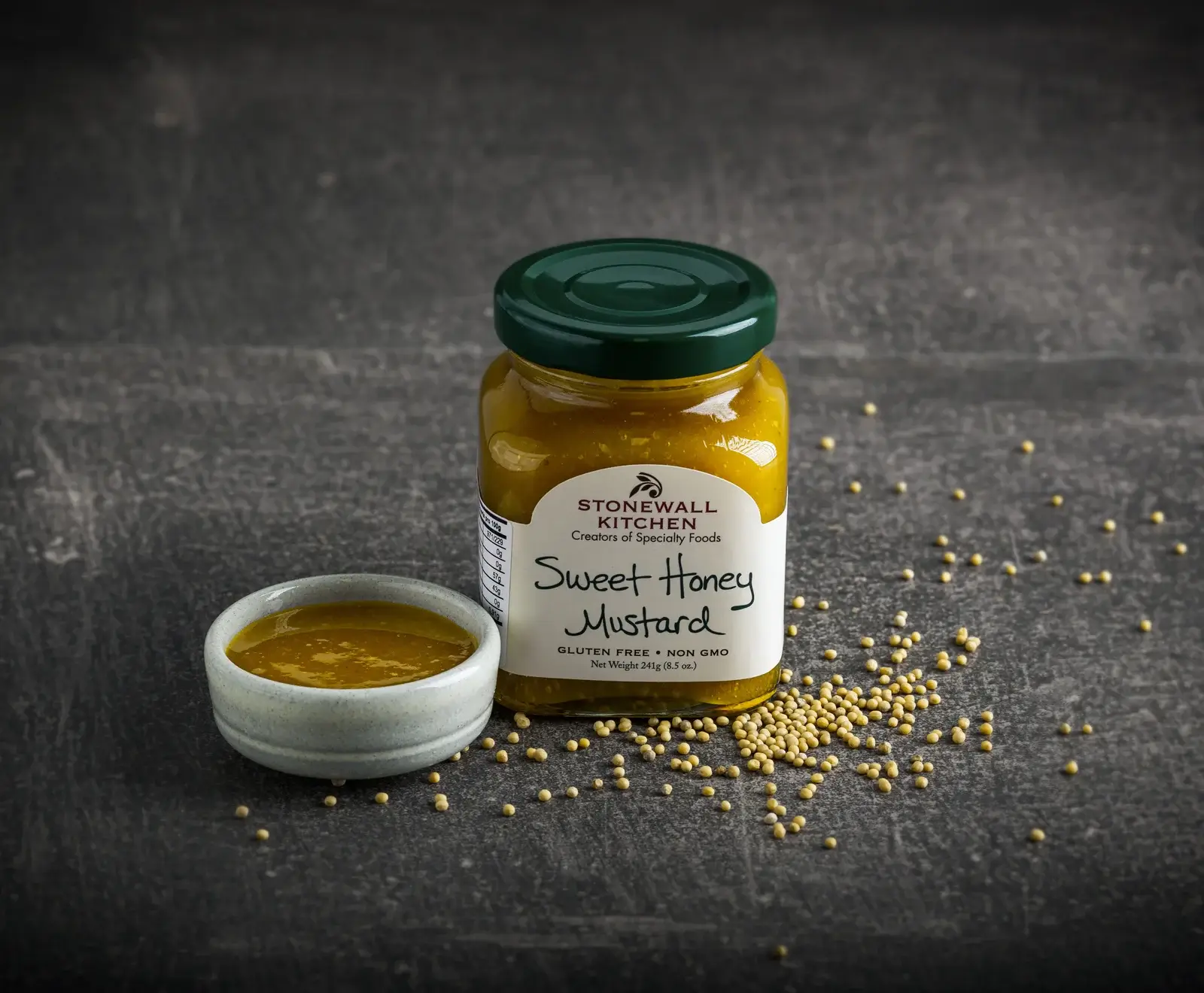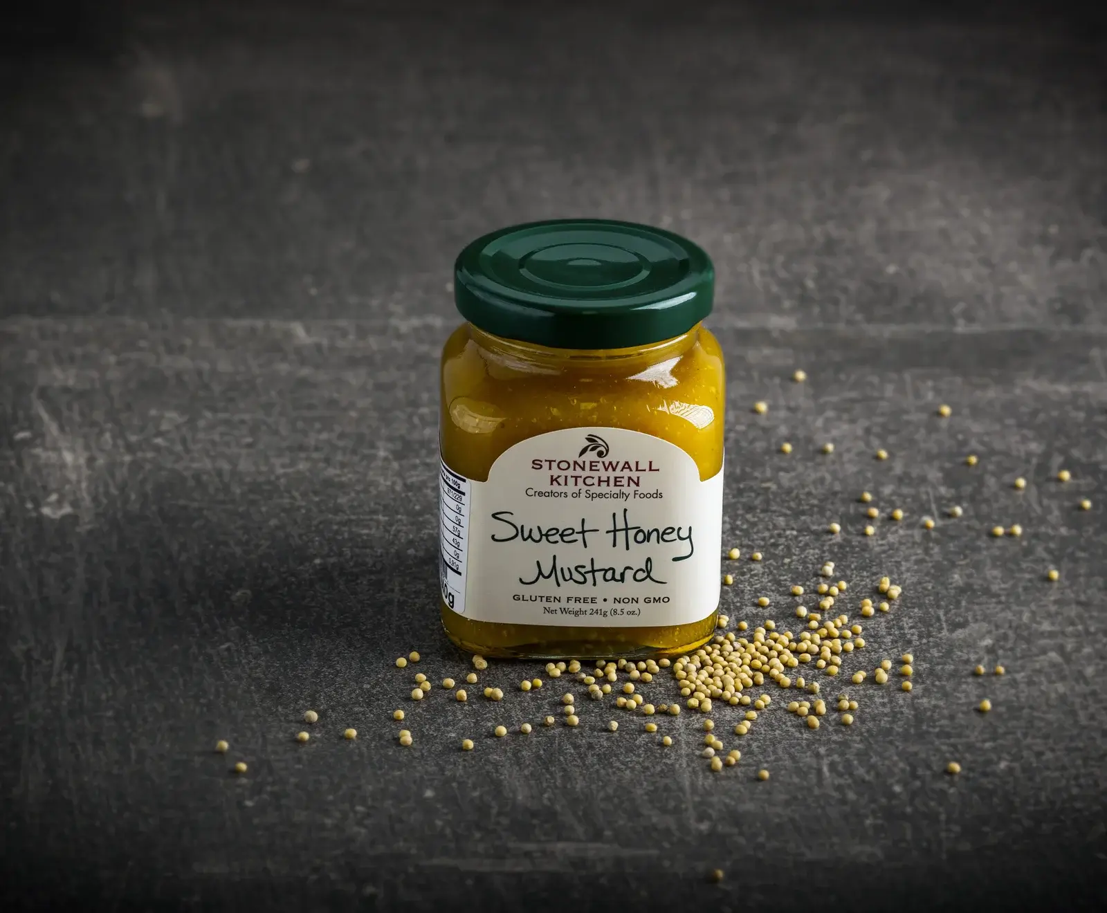 Senf (Senfkörner, Chilischoten, Speisesalz, Branntweinessig, Wasser, Gelbwurz), reiner Rohrzucker, Honig