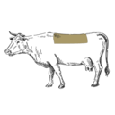 Stilisierte schwarze Kuh auf grünem Hintergrund mit einem hellbraunen Rechteck, das einen Fleischschnitt auf dem Rücken markiert.