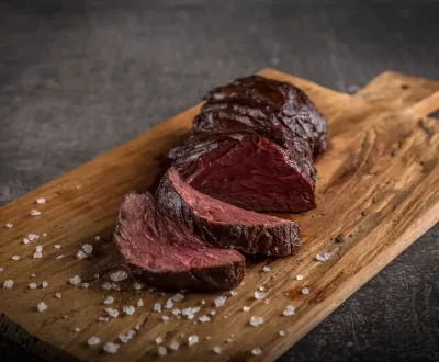 Auf der Hochtemperaturzone des Grills beidseitig scharf anbraten und anschließend das Fleisch im indirekten Bereich bei milden 110 °C auf die gewünschte Kerntemperatur bringen. Wir empfehlen 52 °C für ein innen rosafarbenes Ergebnis (medium). Vor dem Anschneiden gegen die Faser das Fleisch für ein optimal zartes Ergebnis kurz ruhen lassen.