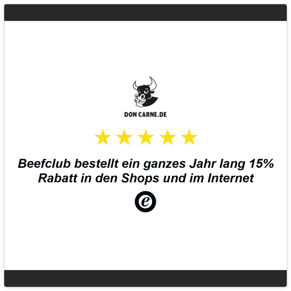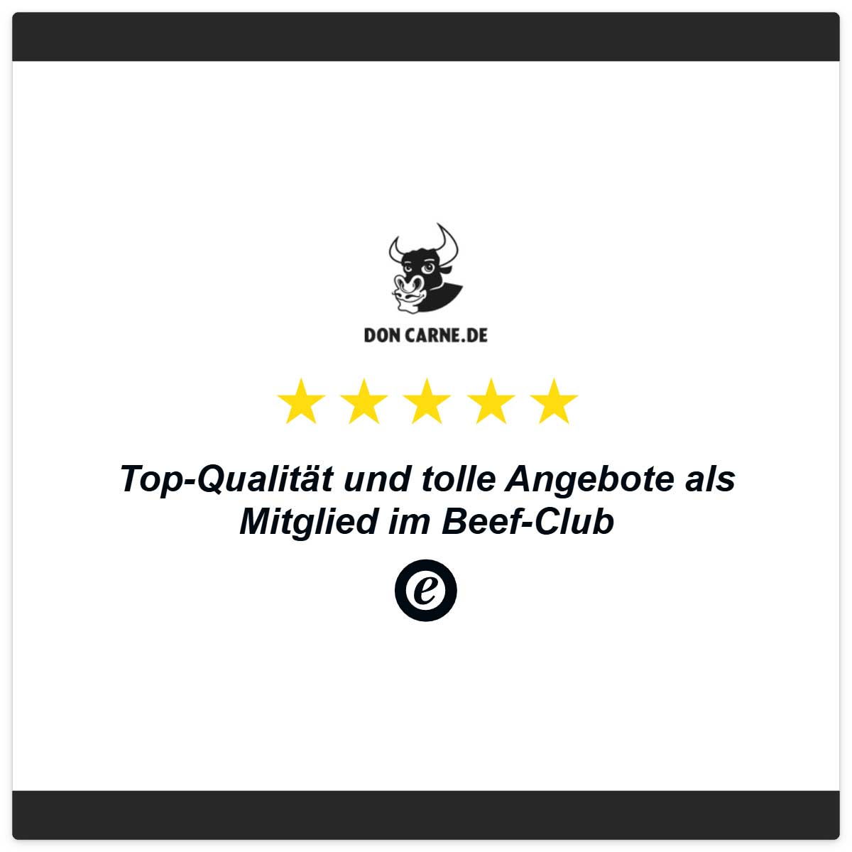 Profitieren Sie von dauerhaften 15 % Rabatt auf Fleisch, exklusiven Fleisch-Specials, limitierten Produkten und einzigartigen Vorteilen – für nur 19 € im Jahr, kein Abo! Sie sparen bereits mit der ersten Bestellung: Beef Club in den Warenkorb legen, gewünschtes Fleisch ergänzen und die Preise werden automatisch um 15% reduziert.