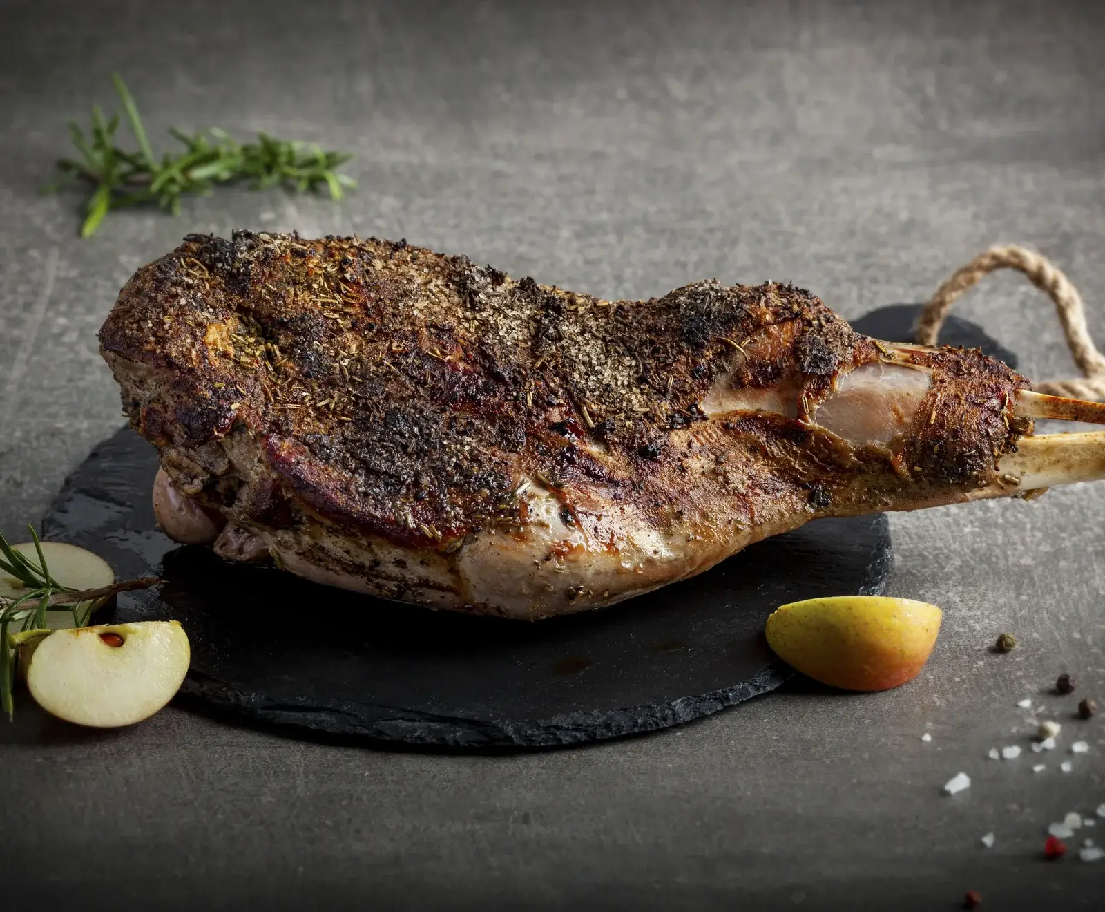 Das fertig parierte Stück mit dem Knochen in einer Marinade aus Kräutern, Knoblauch und Öl über Nacht im Kühlschrank marinieren. Am nächsten Tag den Grill/Backofen auf 150 °C vorheizen. Die Keule bei direkter Hitze anbraten. Anschließend ca. 1 ½ h in der indirekten Grillzone/im Backofen garen. Für mehr Saftigkeit eine Aluschale mit Rotwein oder Bier unter das Fleischstellen. Beim Erreichen der KT von 67 °C die Keule aufschneiden und servieren.