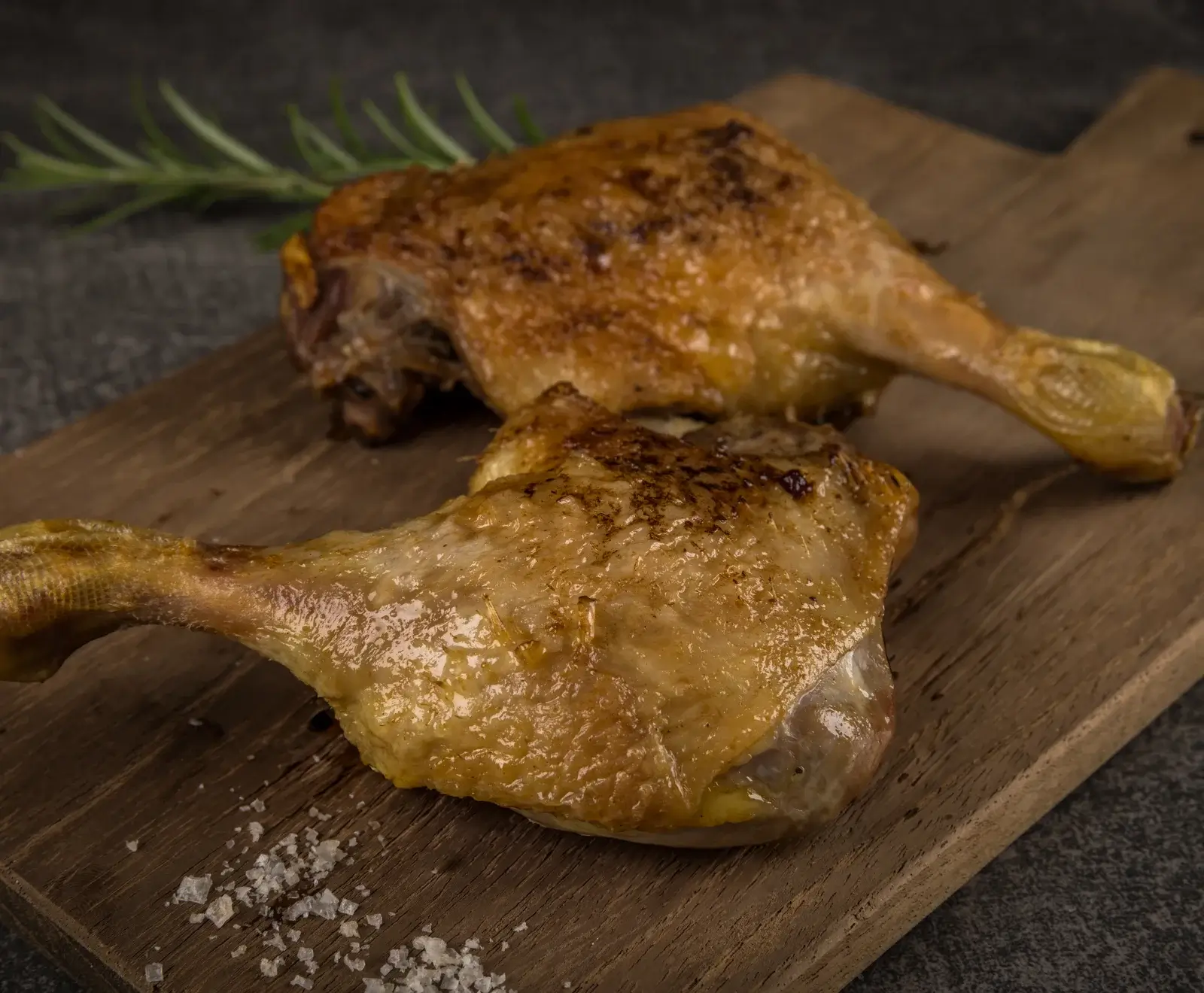 Das Fleisch der Entenkeule gilt als besonders saftig und zart. Wir empfehlen zur Enfaltung des intensiven Fleischaromas die Entenkeule im Ganzen zu garen. Dazu den kompletten Schenkel von außen würzen und bei ca. 200 °C im Backofen oder indirekt im Grill garen, bis die Haut knusprig goldbraun ist und das Fleisch eine Kerntemperatur von ca. 80° C erreicht hat.