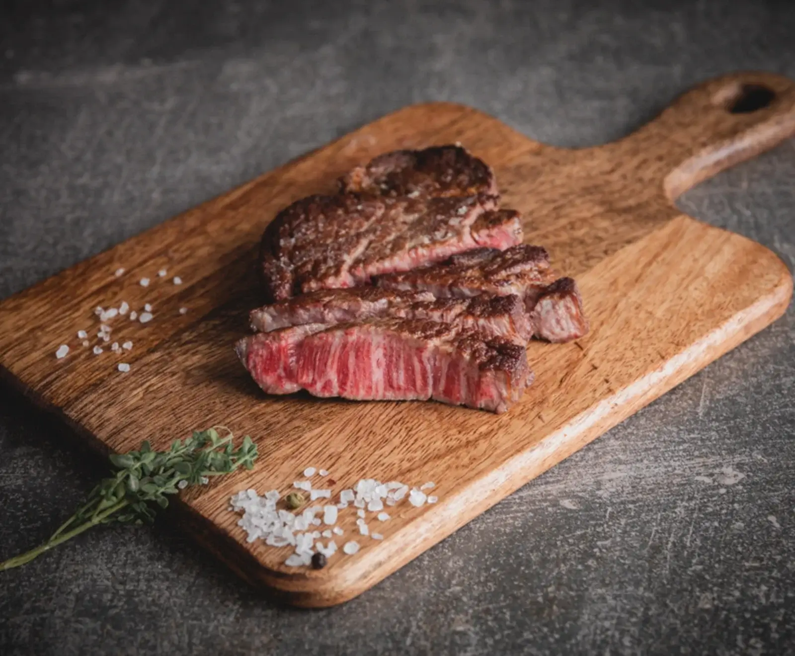 Eine Gourmet-Spezialität für Kenner. Aufgrund dem hohen Anteil intramuskulösen Fetts empfehlen wir eine geringere Kerntemperatur von ca. 52 °C für den optimalen Fleischgenuss. Das aromatische Fett schmilzt früher als üblich und sorgt für den unnachahmlichen Wagyu-Geschmack. Bei hoher Temperatur auf dem Grill oder in der Pfanne beidseitig scharf anbraten und bei milder Hitze garziehen lassen. Salzen und Pfeffern nach Geschmack.