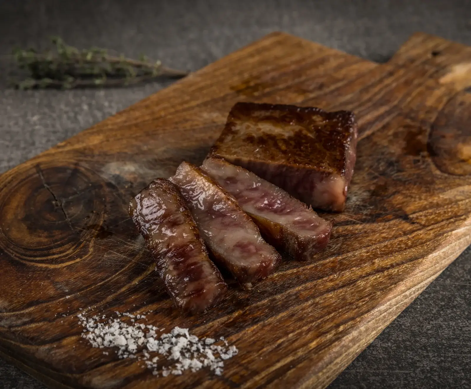 Aufgrund dem hohen Anteil intramuskulösen Fetts empfehlen wir eine geringere Kerntemperatur von ca. 52 °C für den optimalen Fleischgenuss. Das aromatische Fett schmilzt früher als üblich und sorgt für den unnachahmlichen Wagyu-Geschmack. Bei hoher Temperatur auf dem Grill oder in der Pfanne beidseitig scharf anbraten und bei milder Hitze garziehen lassen. Salzen und Pfeffern nach Geschmack.