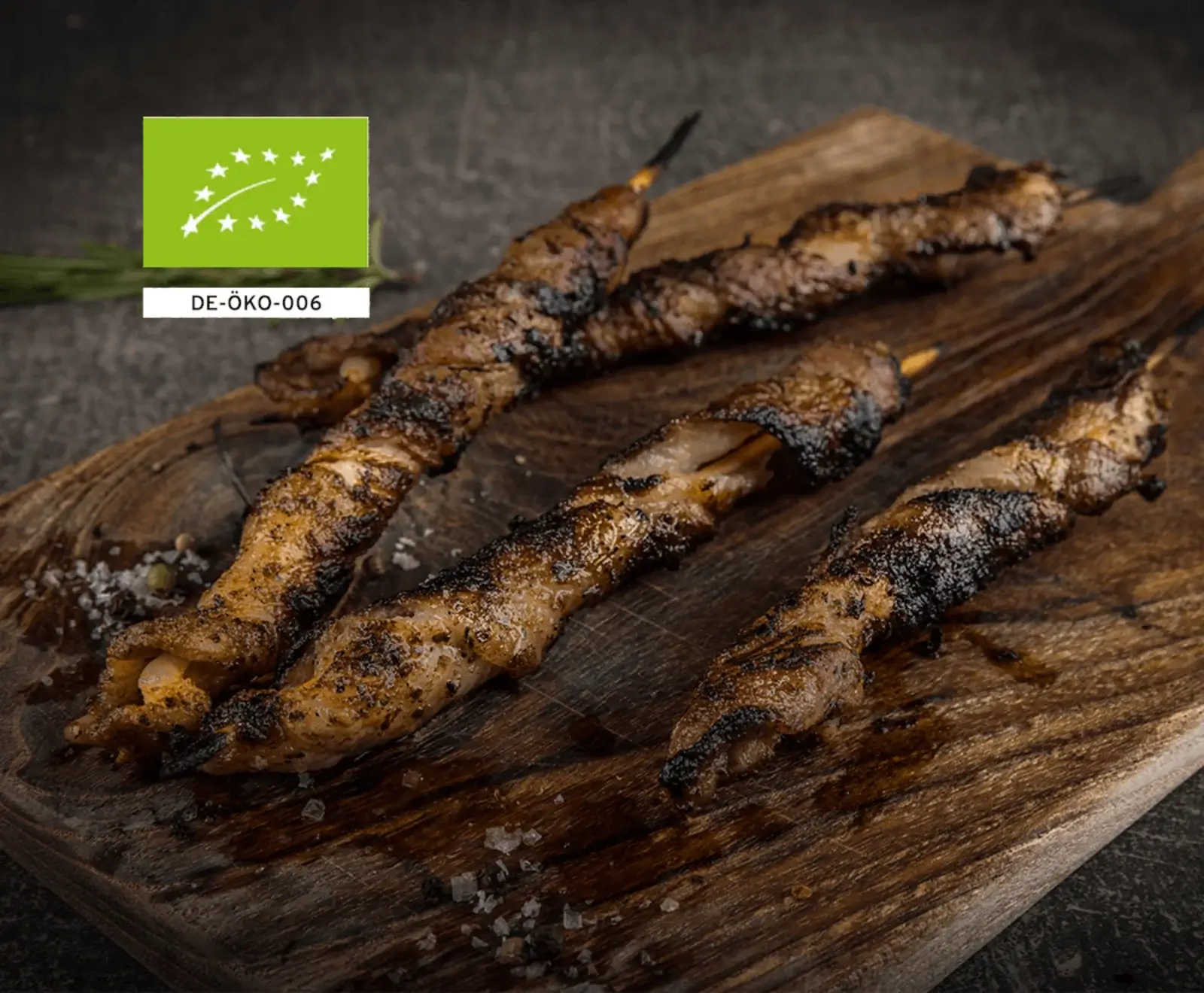 Schweinefleisch* (95%), Marinade* (5%): Sonnenblumenöl, Gewürzsalz* (Steinsalz, Gewürze*, Paprika*, Kräuter*), keine Allergene